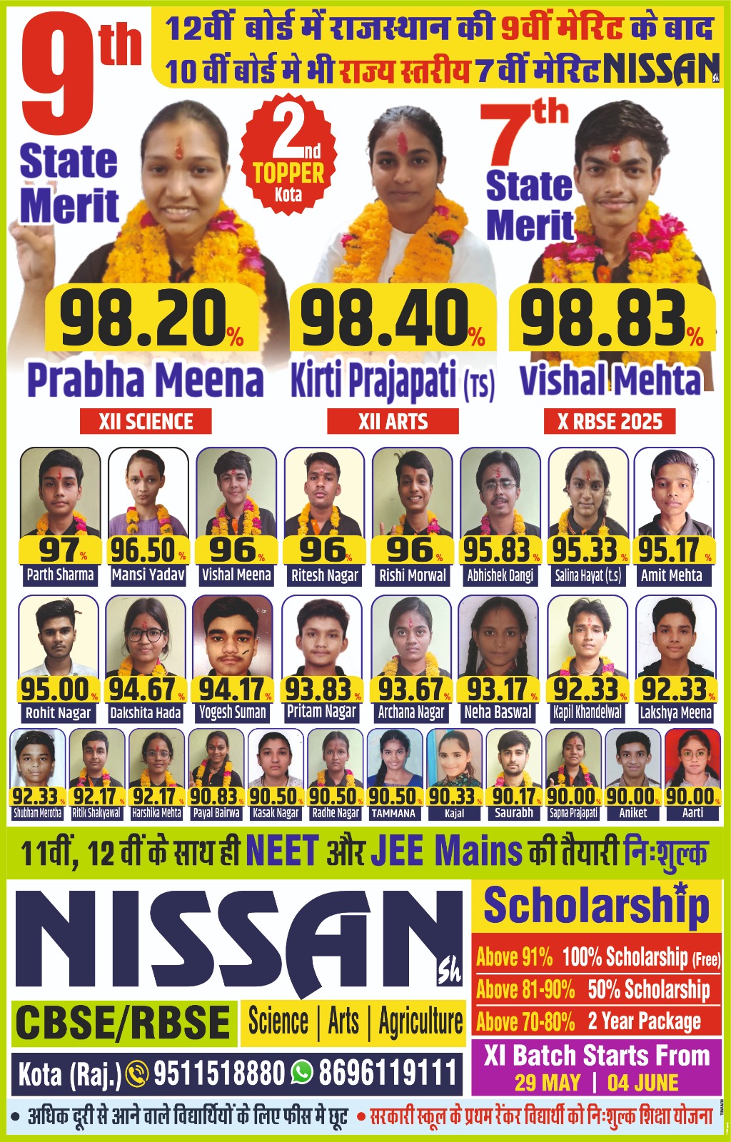 In a short period, NISSANSH CLASSES has achieved the national level’s recognition. The achievement of 75 merit positions represents its best management in this short period.