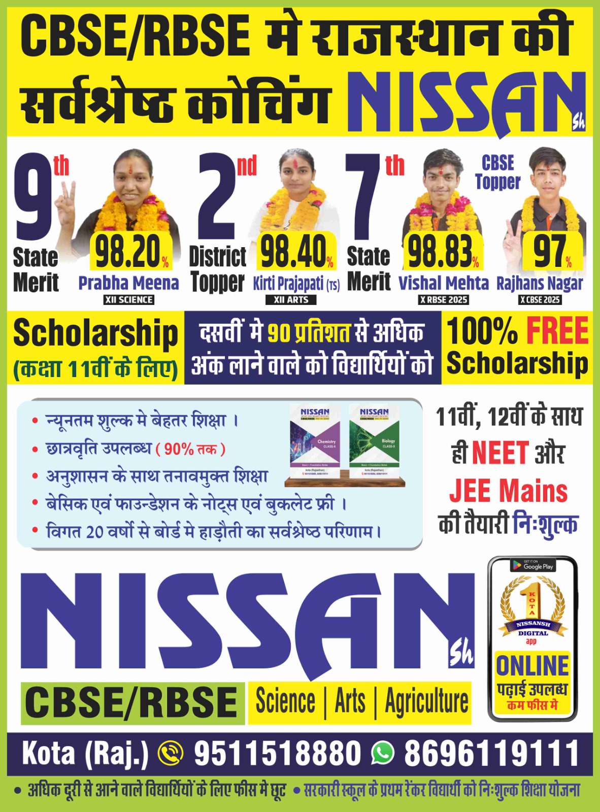 The main aim of NISSANSH CLASSES is to provide the best education in nominal charges to the students of all types of castes.